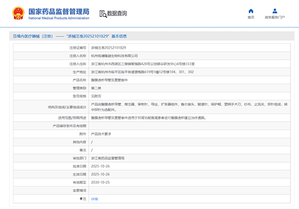 历经隆越各位同仁和合作伙伴共同耕耘,终获硕果!公司自研的腹膜透析导管及置管套件获得国家药品监督管理局第二类医疗器械注册证。