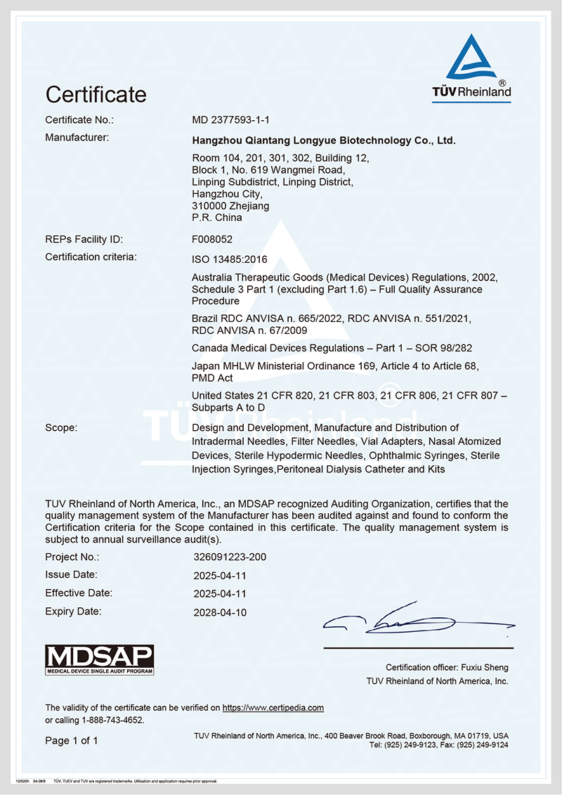 杭州钱塘隆越生物科技有限公司成立于2021年2月,拥有符合GMP要求的万级(C级)洁净生产车间和完善的物理、化学、微生物实验室,建立了符合全球法规要求的研发、生产、测试的质量管理体系,通过了ISO13485质量体系认证。